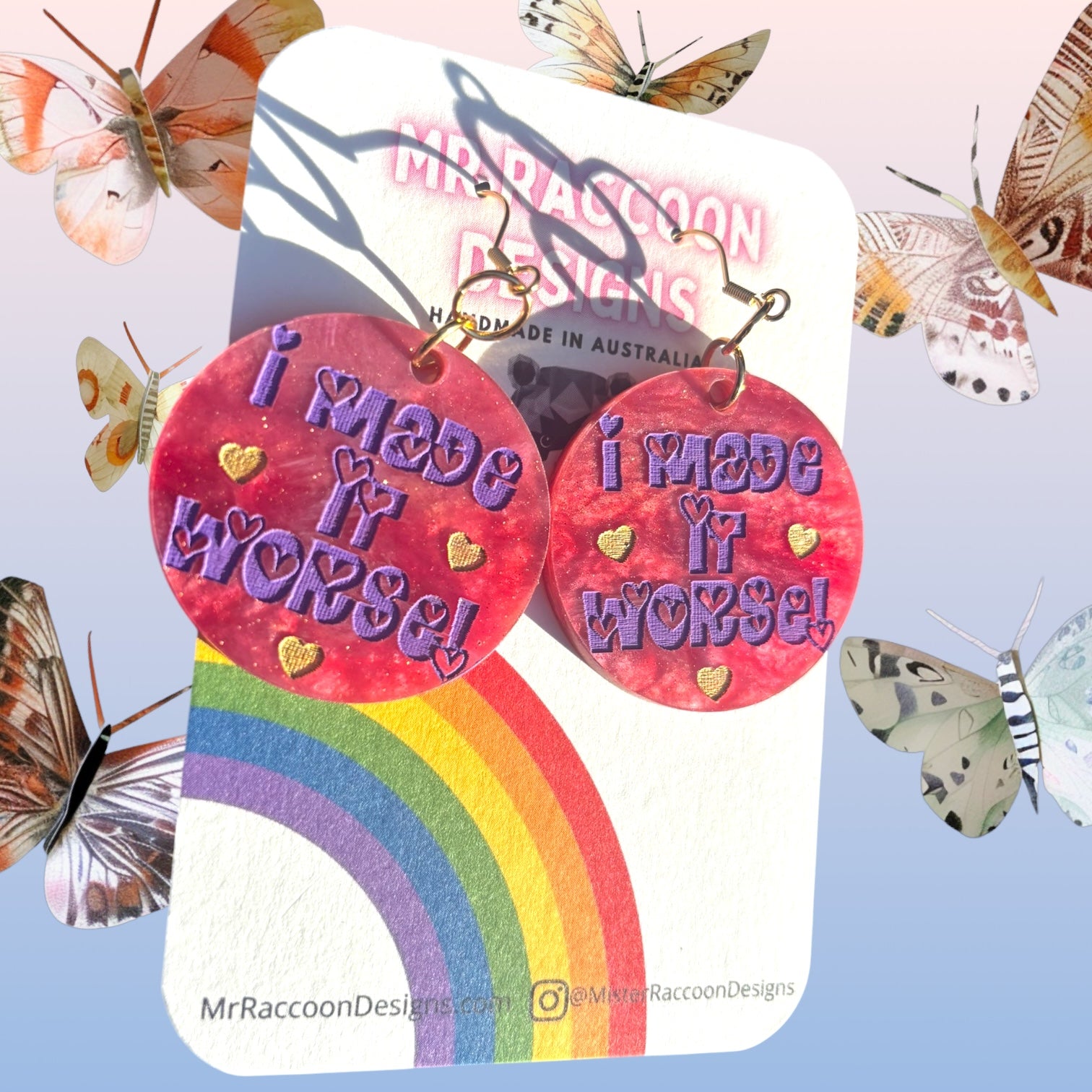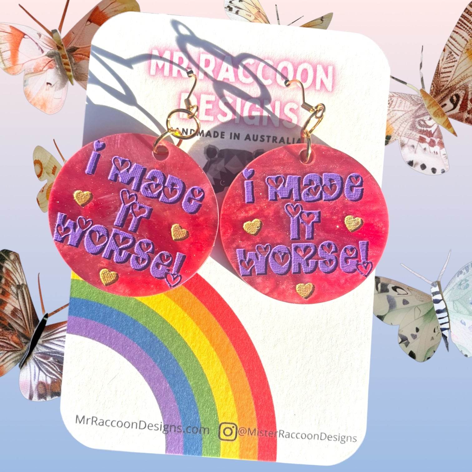 ♥ Acrylic is lightweight and strong, this are larger so make sure your ears can handle a little weight - please refer to our care instructions page to see how to properly care for your Mr Raccoon earrings!